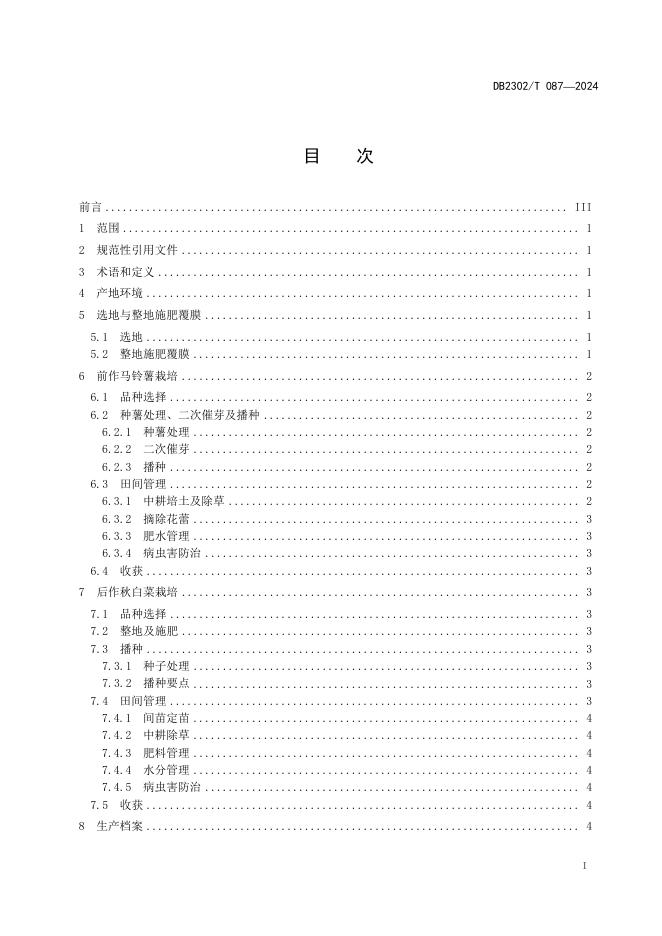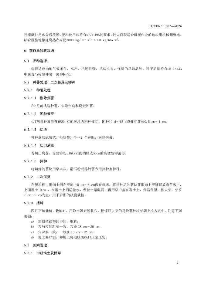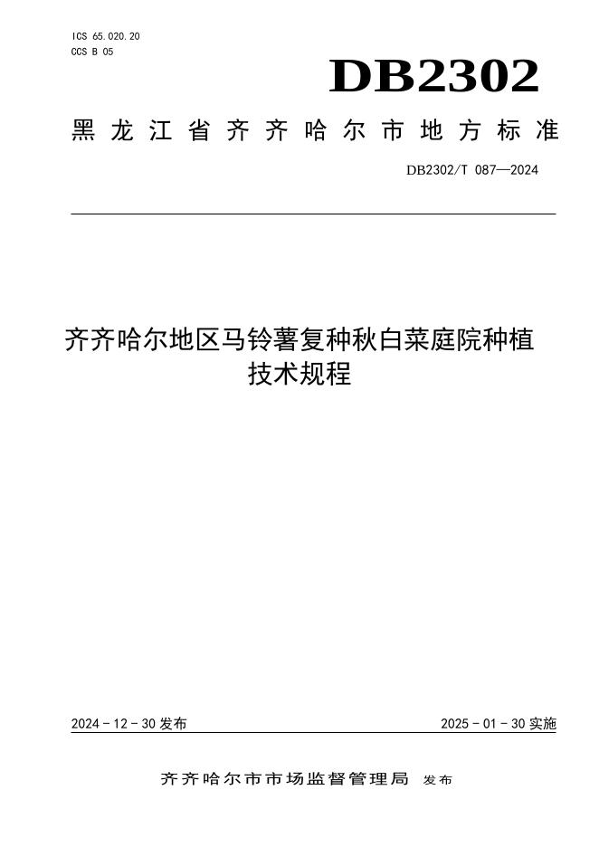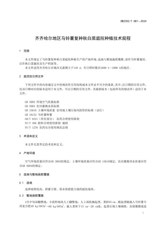 DB2302/T 087-2024 齐齐哈尔地区马铃薯复种秋白菜庭院种植技术规程