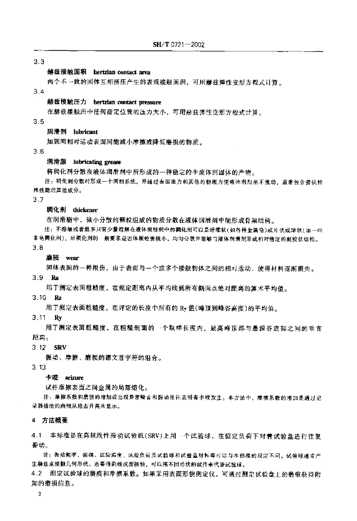 SH/T 0721-2002 润滑脂摩擦磨损性能测定法(高频线性振动试验机法)