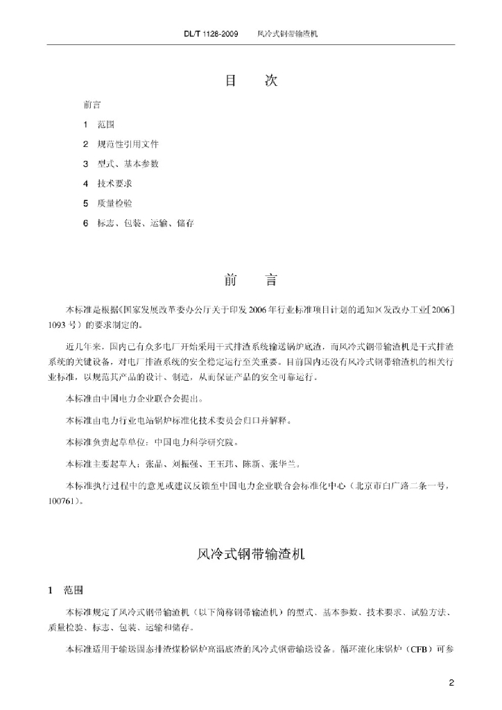 DL/T 1128-2009 风冷式钢带输渣机