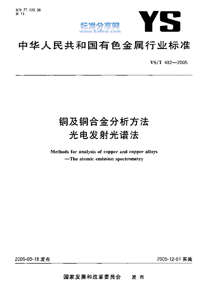 YS/T 482-2005 铜及铜合金分析方法光电发射光谱法