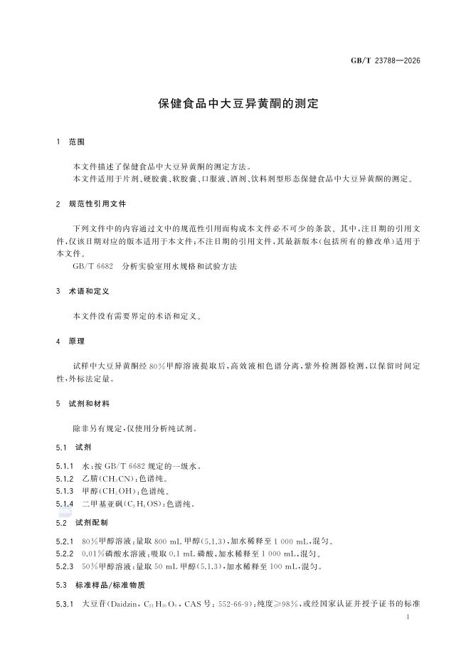 GB/T 23788-2026 保健食品中大豆异黄酮的测定