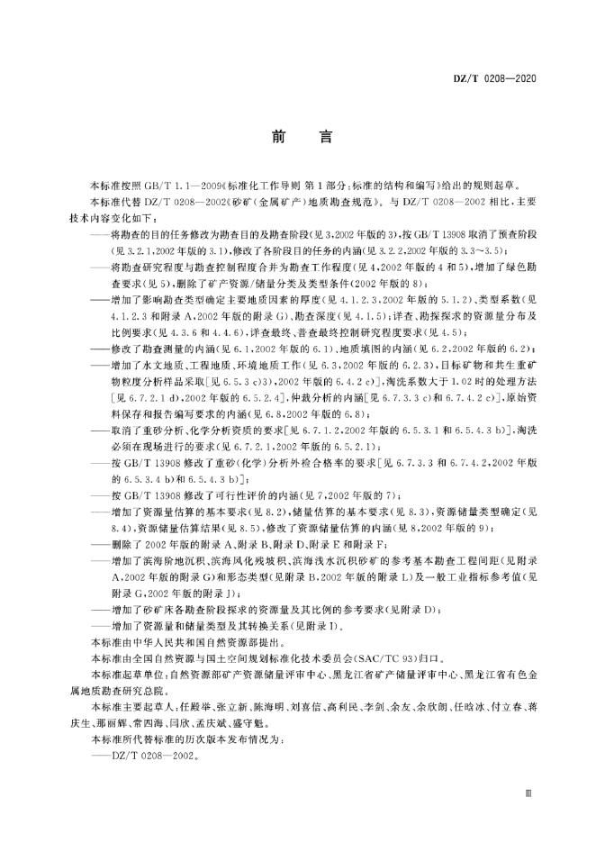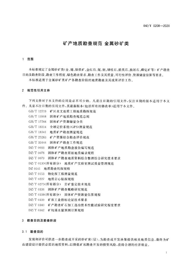 DZ/T 0208-2020 矿产地质勘查规范 金属矿砂类