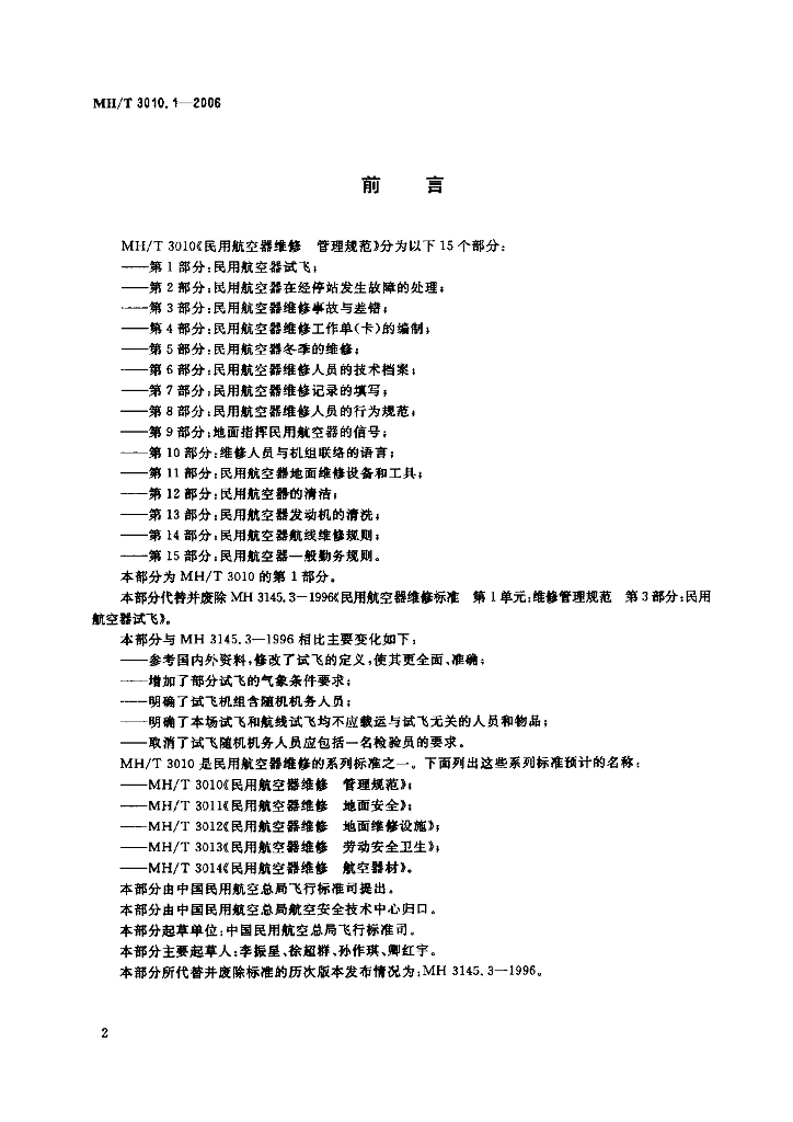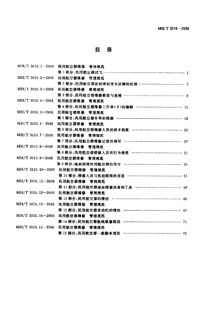 MH/T 3010-2006 民用航空器维修管理规范(第1-15部分合集)
