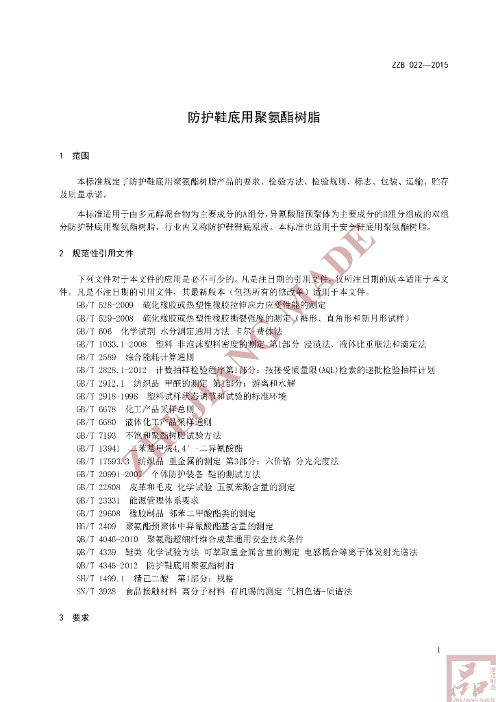 T/ZZB 022-2015 防护鞋底用聚氨酯树脂