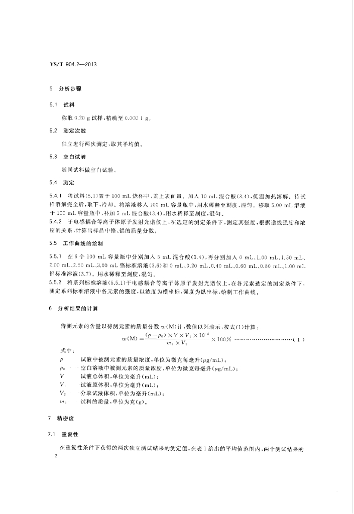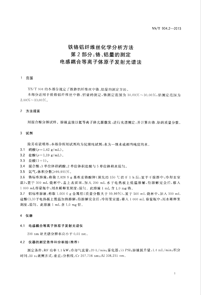 YS/T 904.2-2013 铁铬铝纤维丝化学分析方法 第2部分:铬、铝量的测定电感耦合等离子体原子发射光谱法