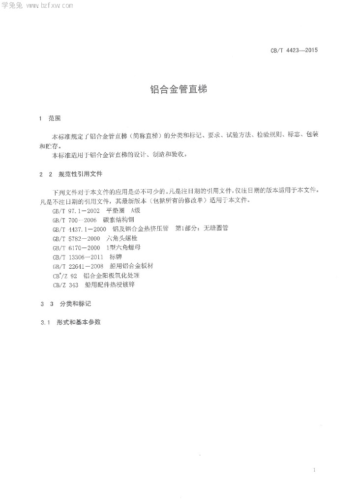 CB/T 4423-2015 铝合金管直梯