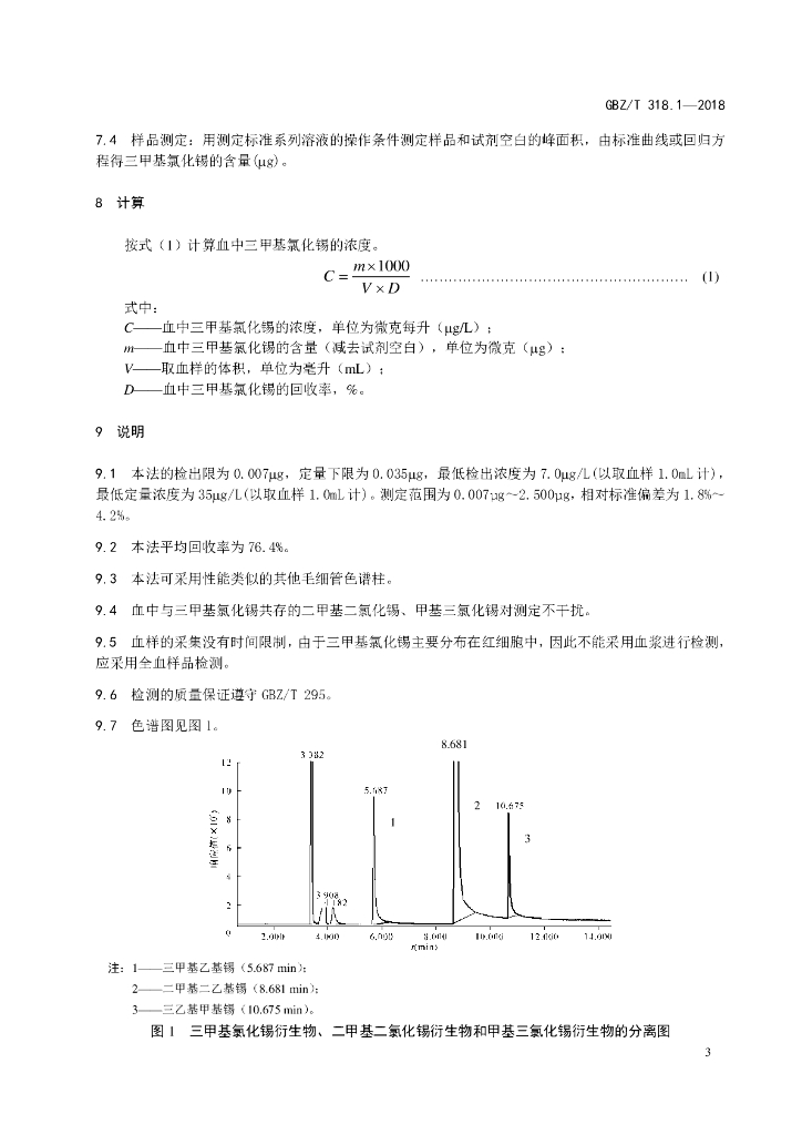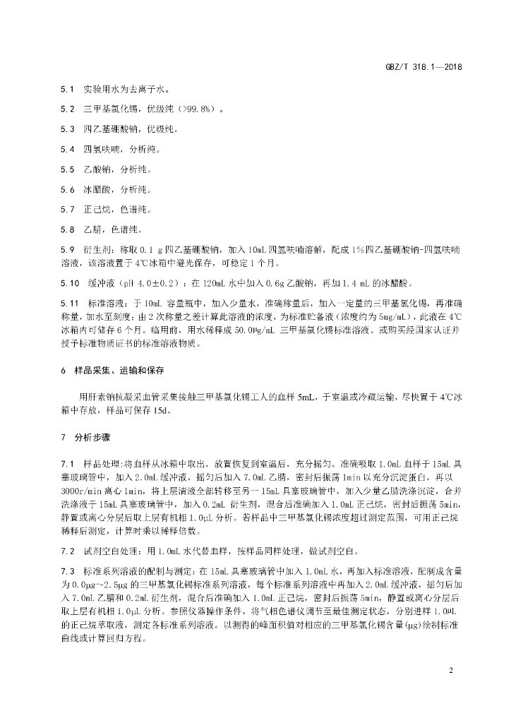 GBZ/T 318.1-2018 血中三甲基氯化锡的测定 第1部分:气相色谱法