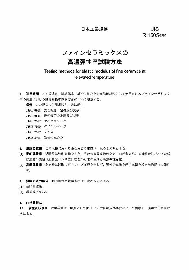 JIS R1605-1995 高温下精制陶瓷挠曲模数的测试方法