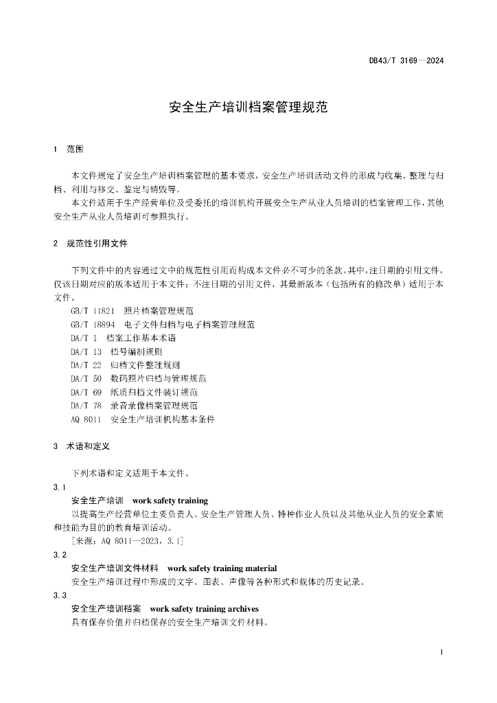DB43/T 3169-2024 安全生产培训档案管理规范