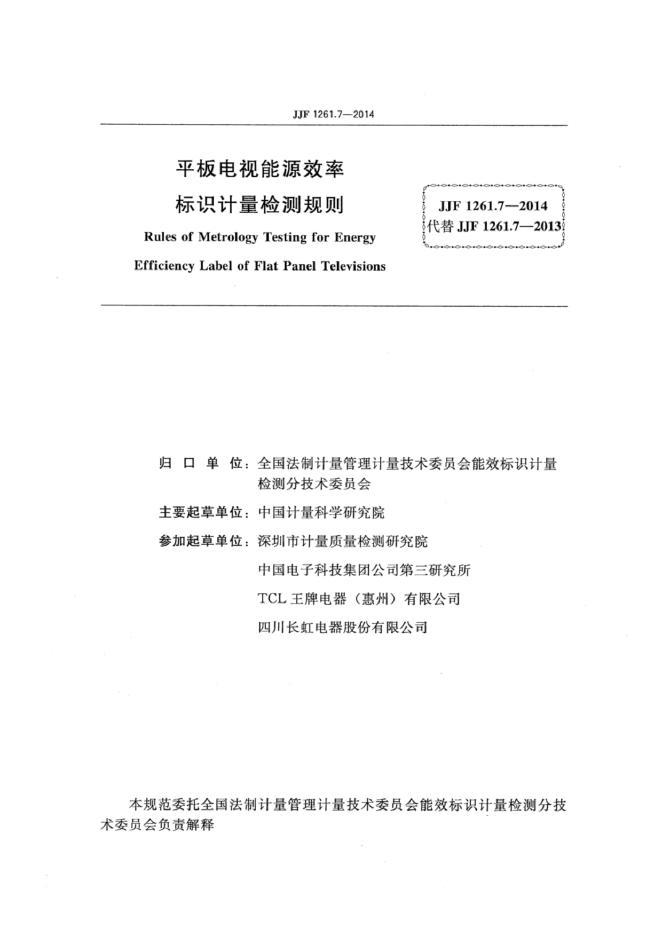 中国计量科学研究院、深圳市计量质量检测研究院、中国电子科技集团公司第三研究所、TCL 王牌电器(惠州)有限公司、四川长虹电器股份有限公司