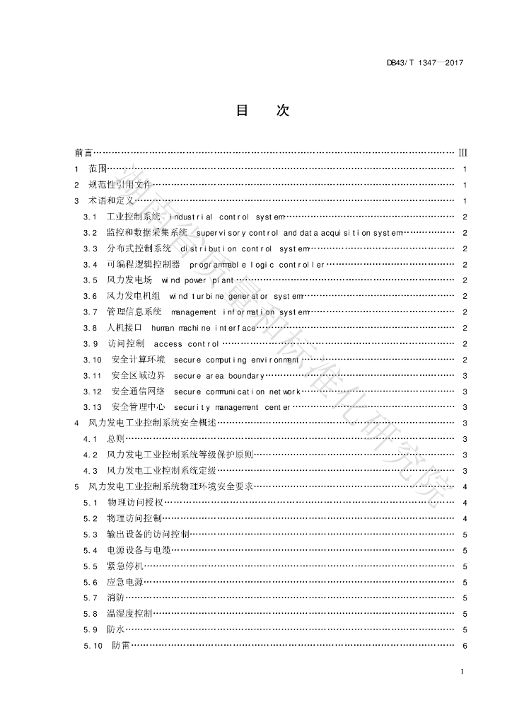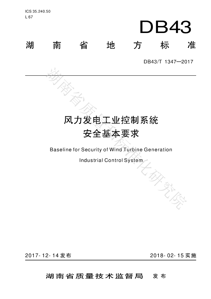 DB43/T 1347-2017 风力发电工业控制系统安全基本要求