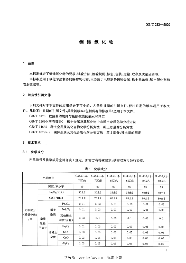 XB/T 233-2020 镧铈氧化物