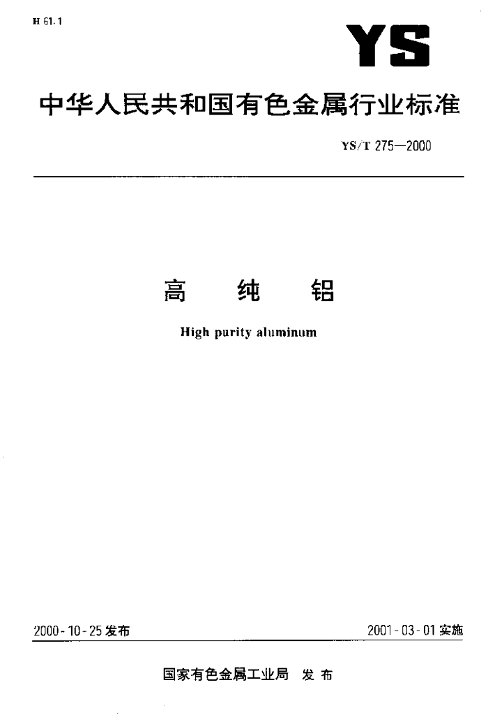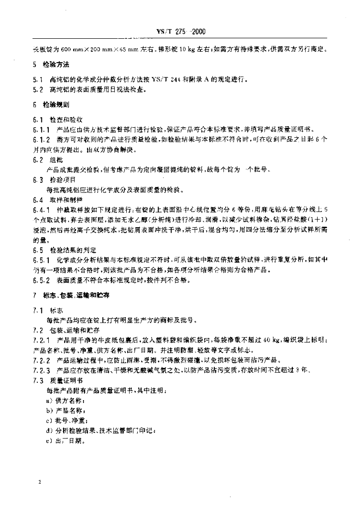 YS/T 275-2000 高纯铝