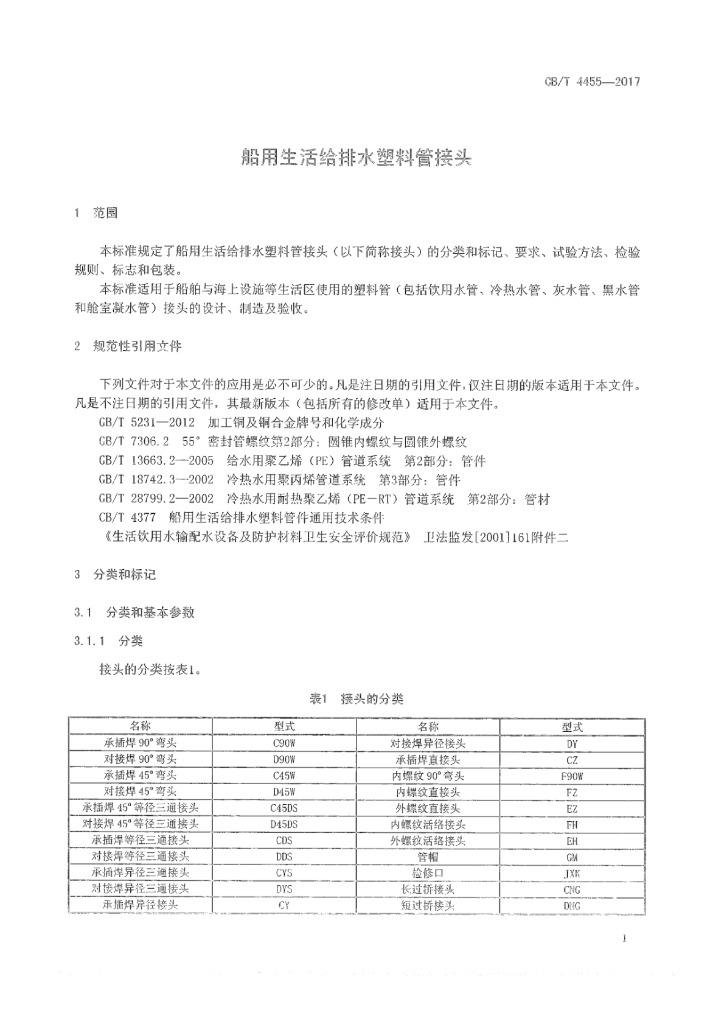 CB/T 4455-2017 船用生活给排水塑料管接头