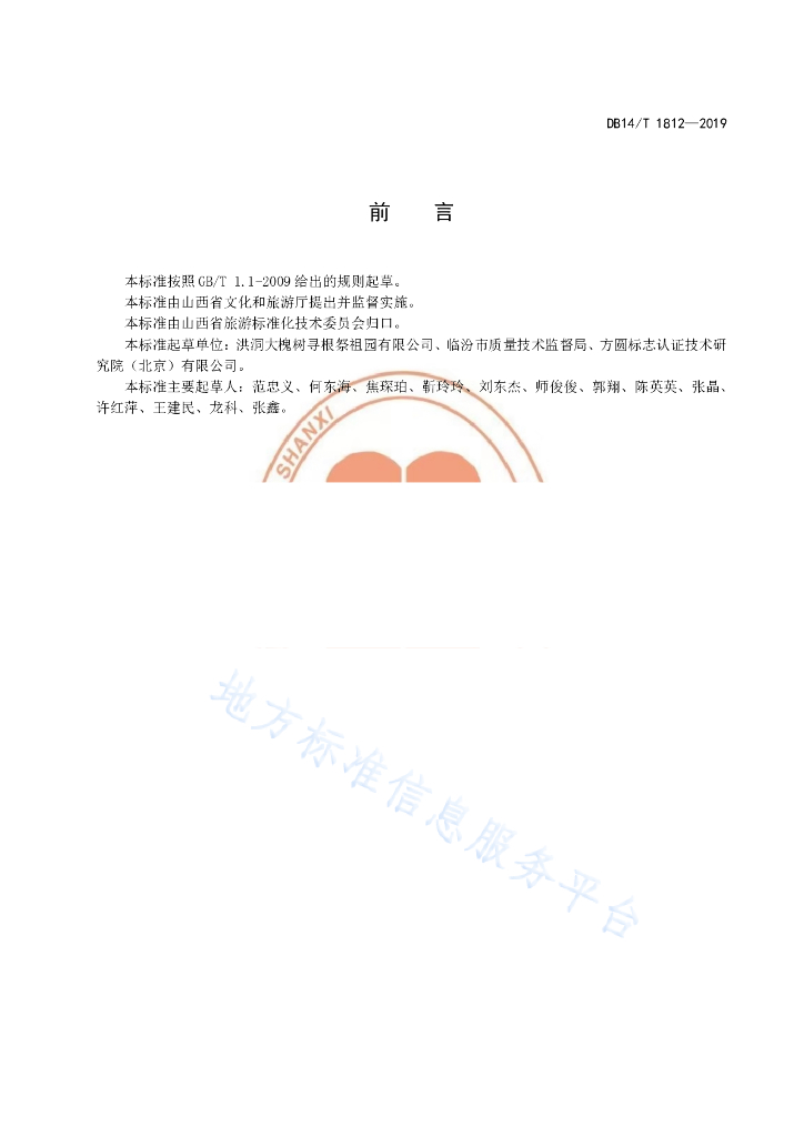 洪洞大槐树寻根祭祖园有限公司、临汾市质量技术监督局、方圆标志认证技术研究院(北京)有限公司。