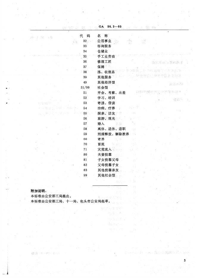 GA 56.2-1993 暂住人口基本信息管理标准 暂住事由代码