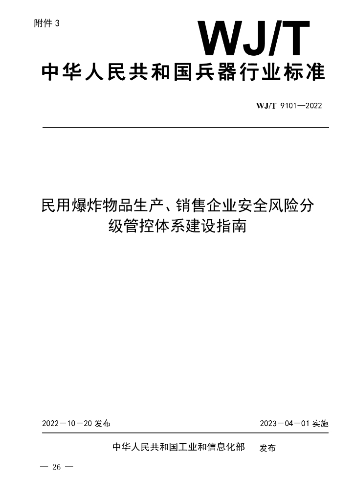 WJ/T 9101-2022 民用爆炸物品生产、销售企业安全风险分级管控体系建设指南