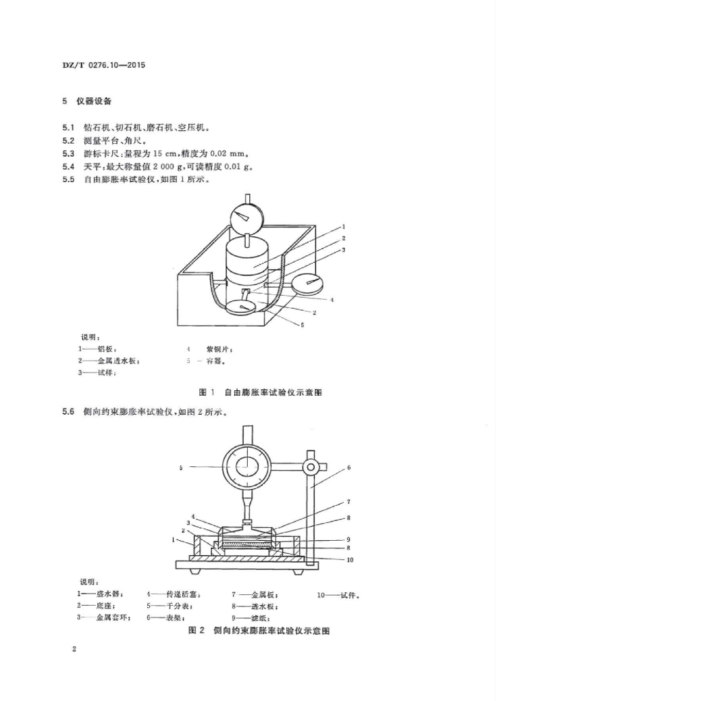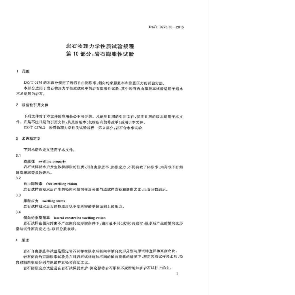 DZ/T 0276.10-2015 岩石物理力学性质试验规程 第10部分:岩石膨胀性试验