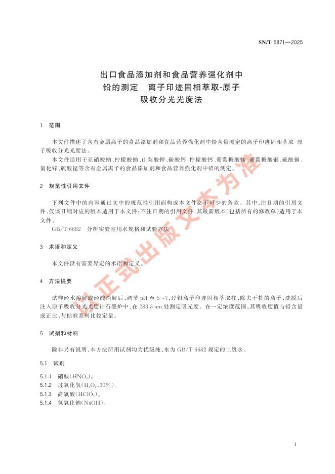 SN/T 5871-2025 出口食品添加剂和食品营养强化剂中铅的测定 离子印迹固相萃取-原子吸收分光光度法