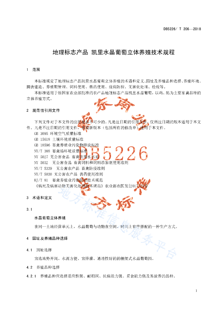 DB5226/T 206-2018 地理标志产品 凯里水晶葡萄立体养殖技术规程