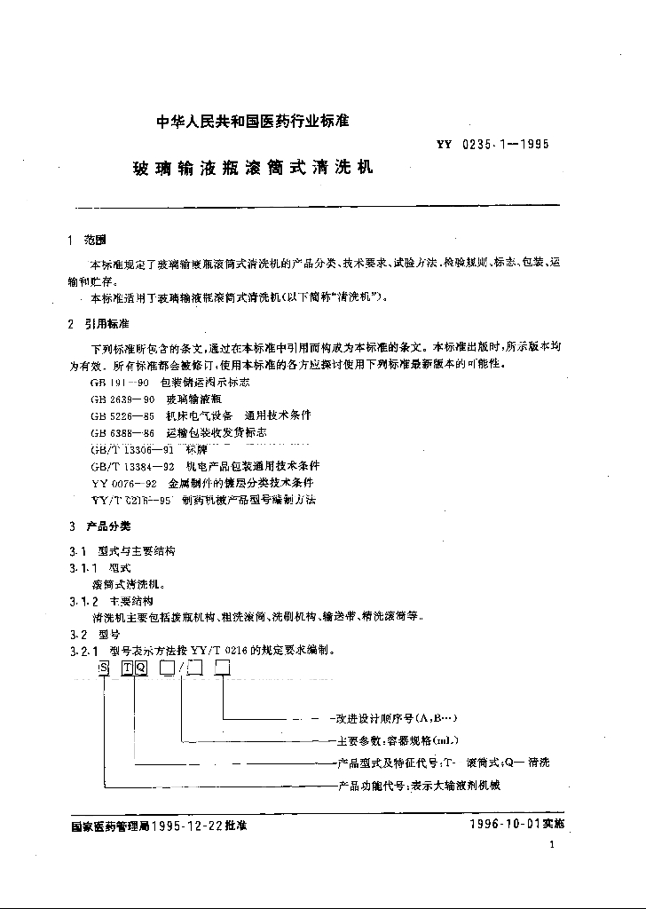 YY 0235.1-1995 玻璃输液瓶滚筒式清洗机