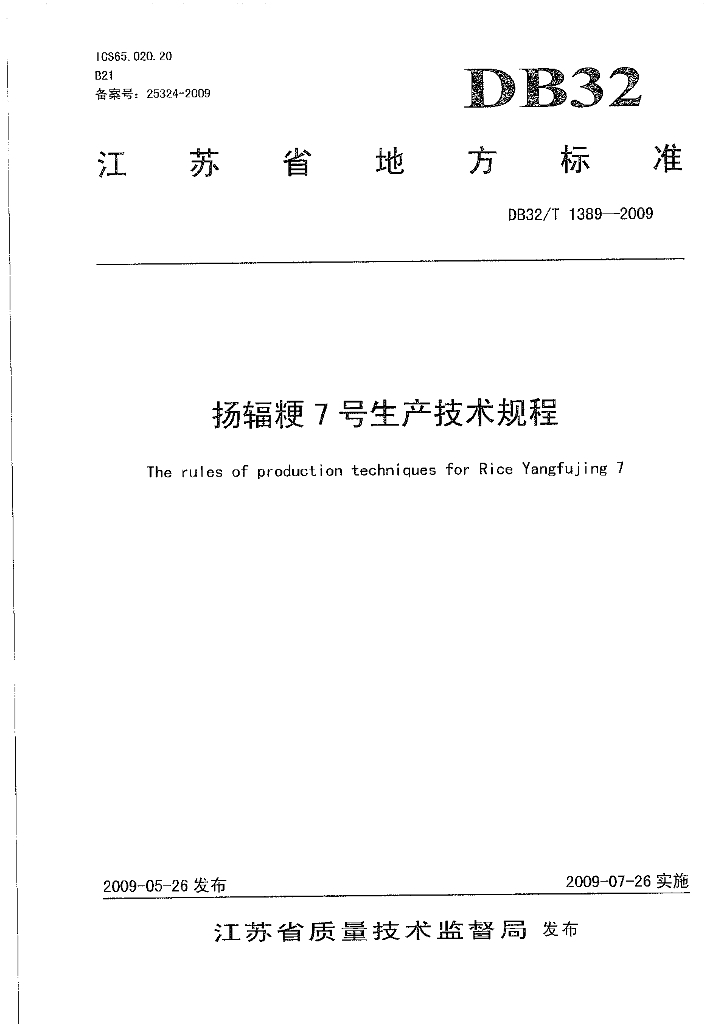 DB32/T 1389-2009 扬辐粳7号生产技术规程