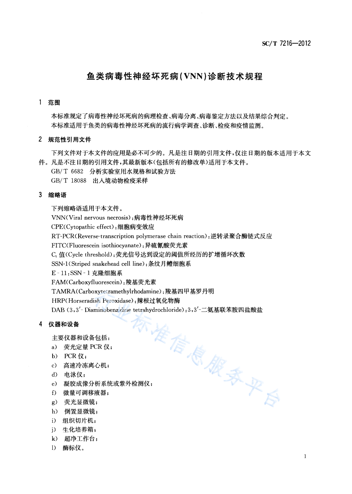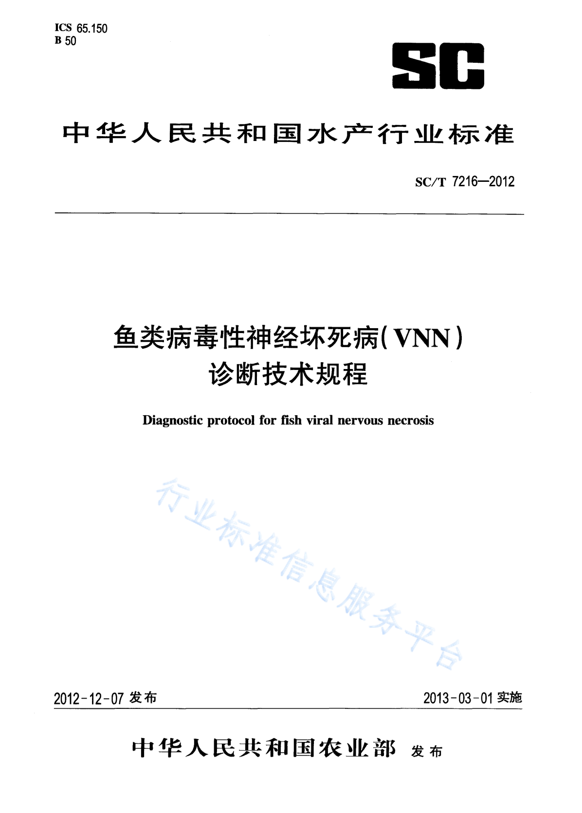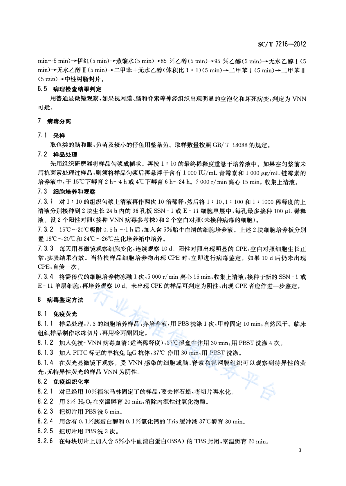 SC/T 7216-2012 鱼类病毒性神经坏死病(VNN)诊断技术规程
