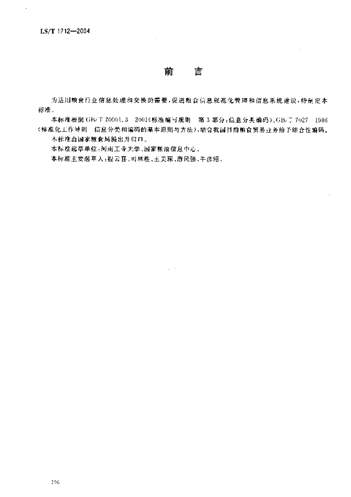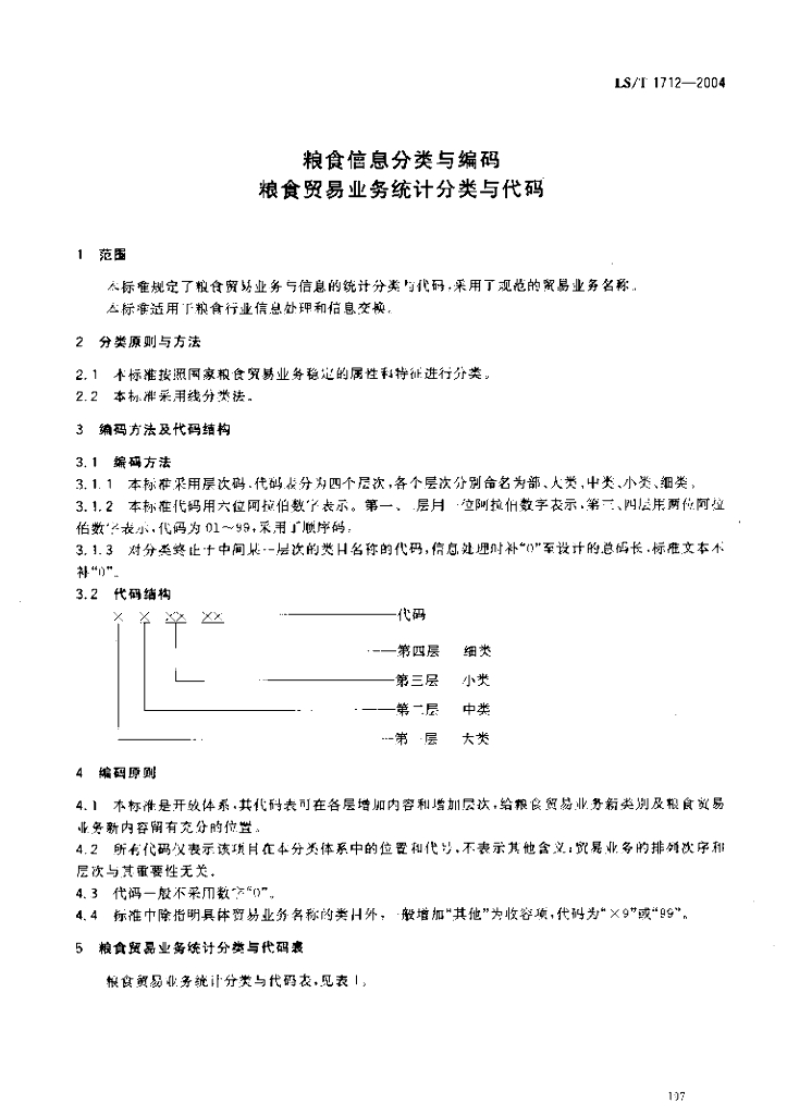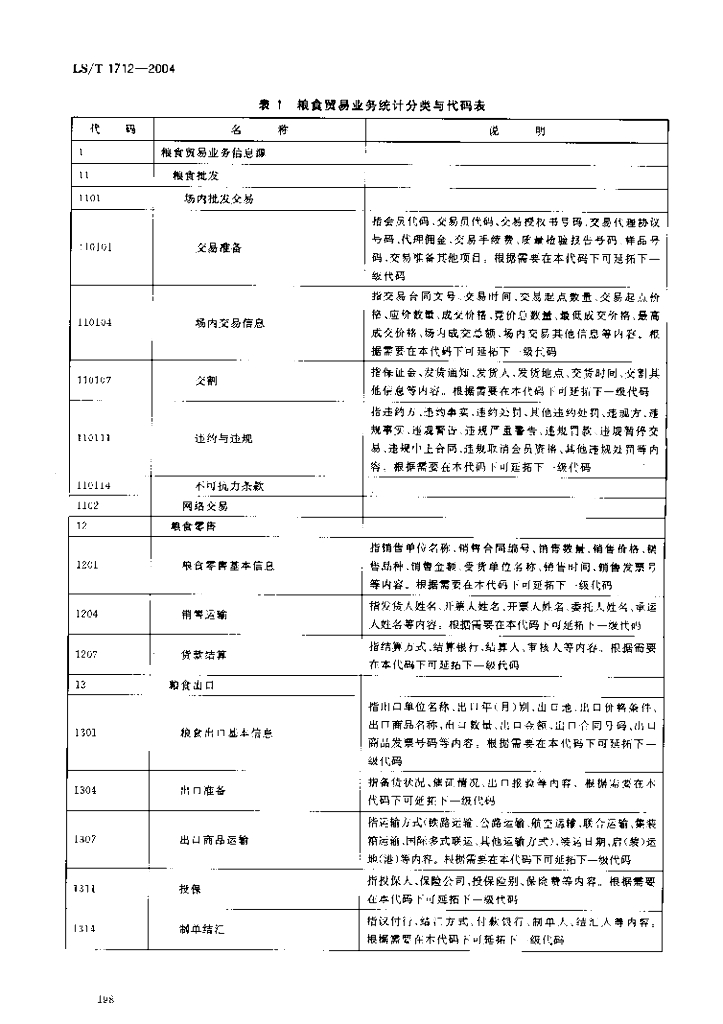 LS/T 1712-2004 粮食信息分类与编码 粮食贸易业务统计分类与代码