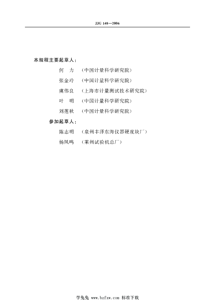 何力(中国计量科学研究院)、张金玲(中国计量科学研究院)、虞伟良(上海市计量测试技术研究院)、叶明(中国计量科学研究院)、刘莲秋(中国计量科学研究院)、陈志明(泉州丰泽东海仪器硬度块厂)、杨凤鸣(莱州试验机总厂)