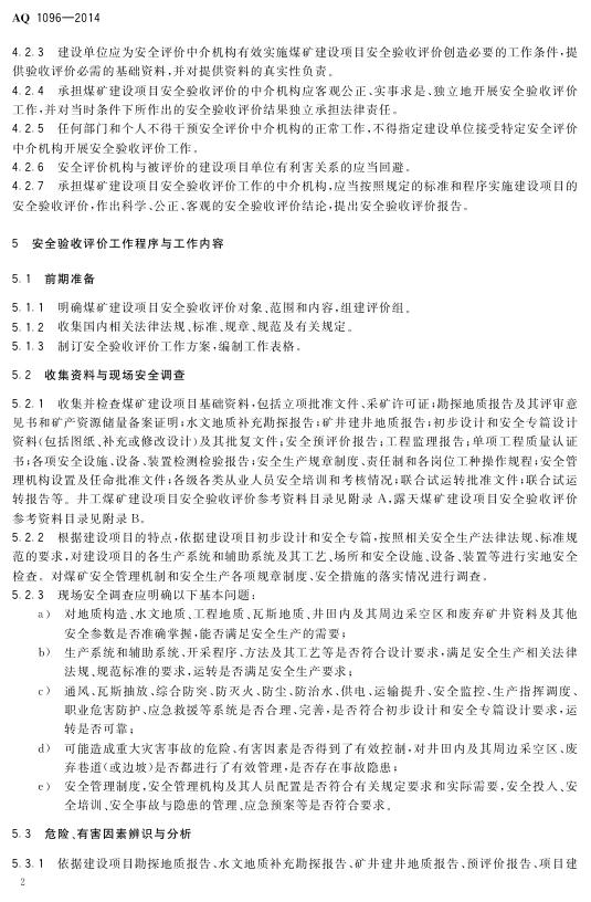 AQ/T 1096-2014 煤矿建设项目安全验收评价实施细则