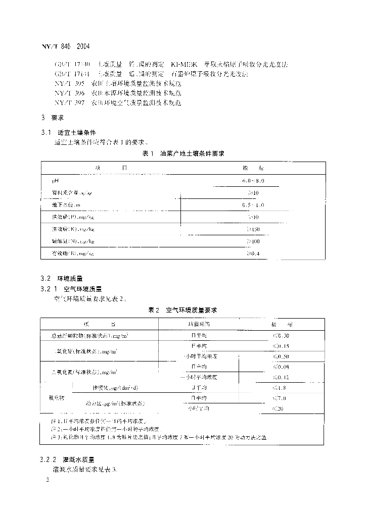NY 846-2004 油菜产地环境条件