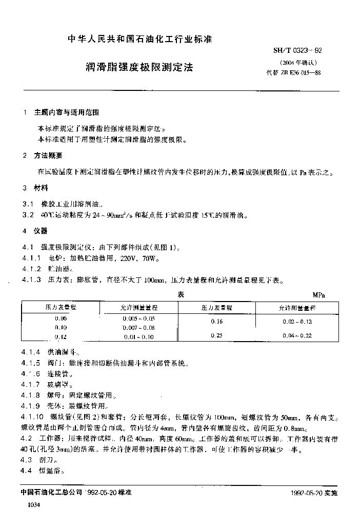 SH/T 0323-1992 润滑脂强度极限测定法