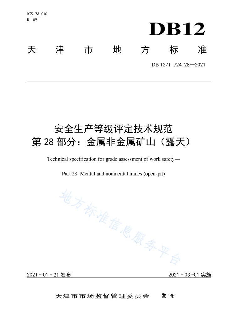DB12/T 724.28-2021 安全生产等级评定技术规范 第28部分:金属非金属矿山(露天)