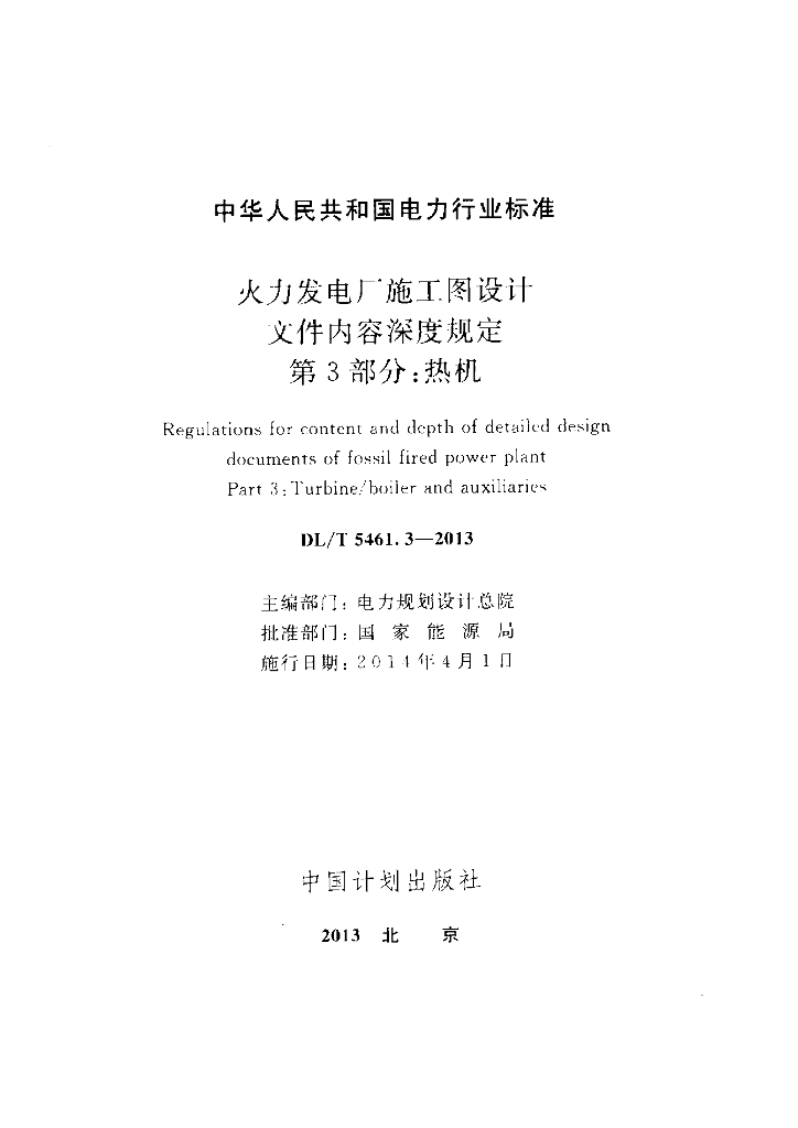 DL/T 5461.3-2013 火力发电厂施工图设计文件内容深度规定 第3部分: 热机