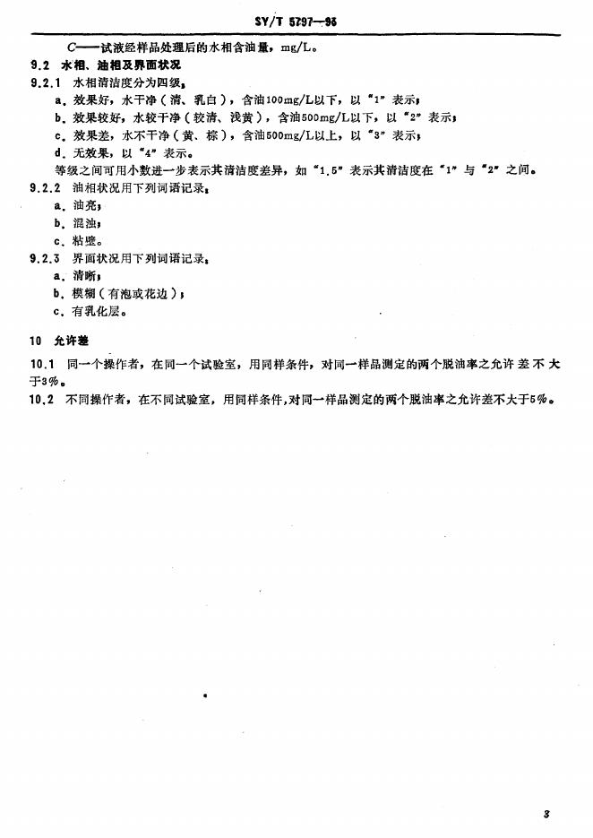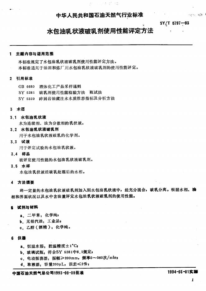 SY/T 5797-1993 水包油乳状液破乳剂使用性能评定方法