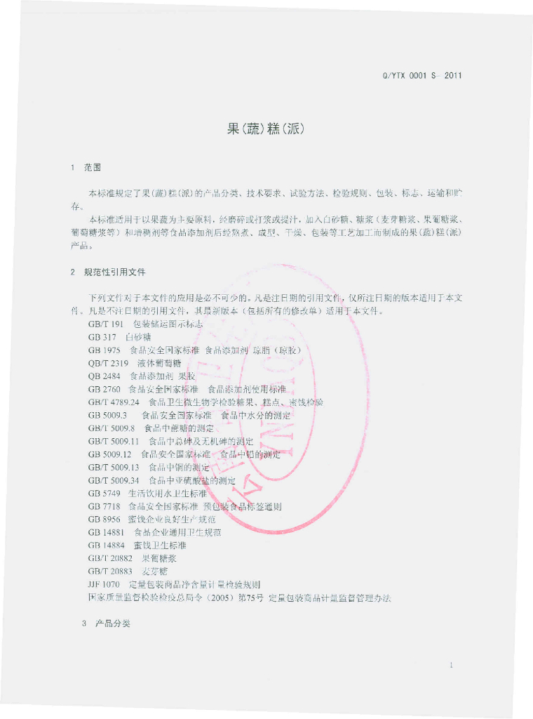 Q/YTX 0001S-2011 果(蔬)糕(派)