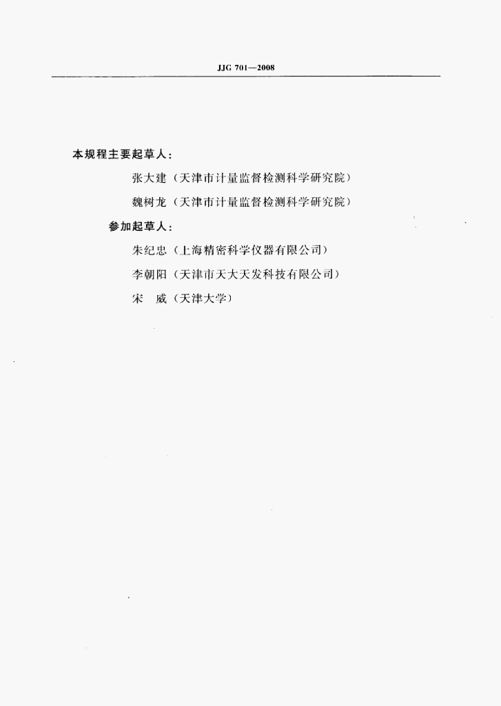 张大建(天津市计量监督检测科学研究院)、魏树龙(天津市计量监督检测科学研究院)、朱纪忠(上海精密科学仪器有限公司) 、李朝阳(天津市天大天发科技有限公司)、宋威(天津大学)