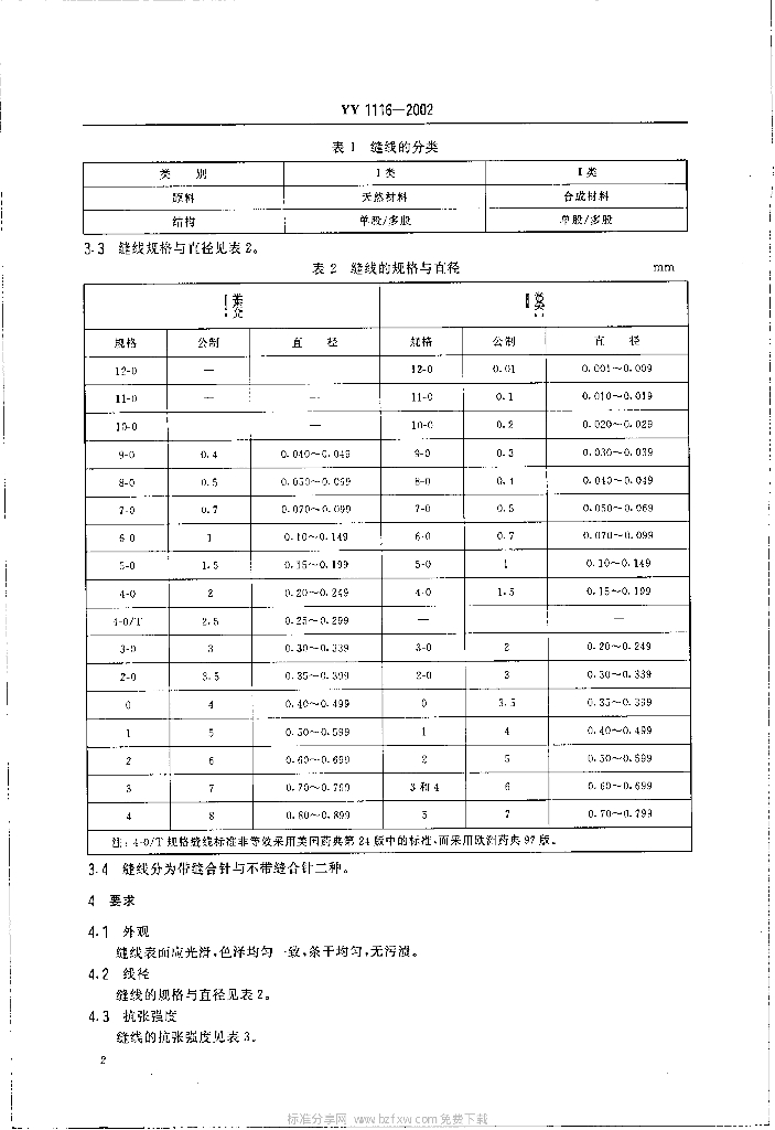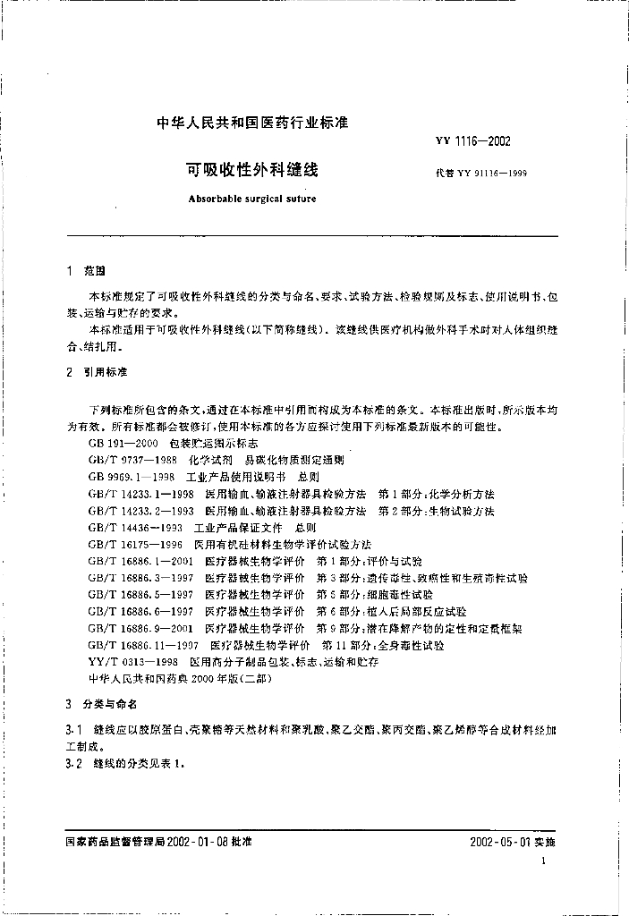 YY 1116-2002 可吸收性外科缝线