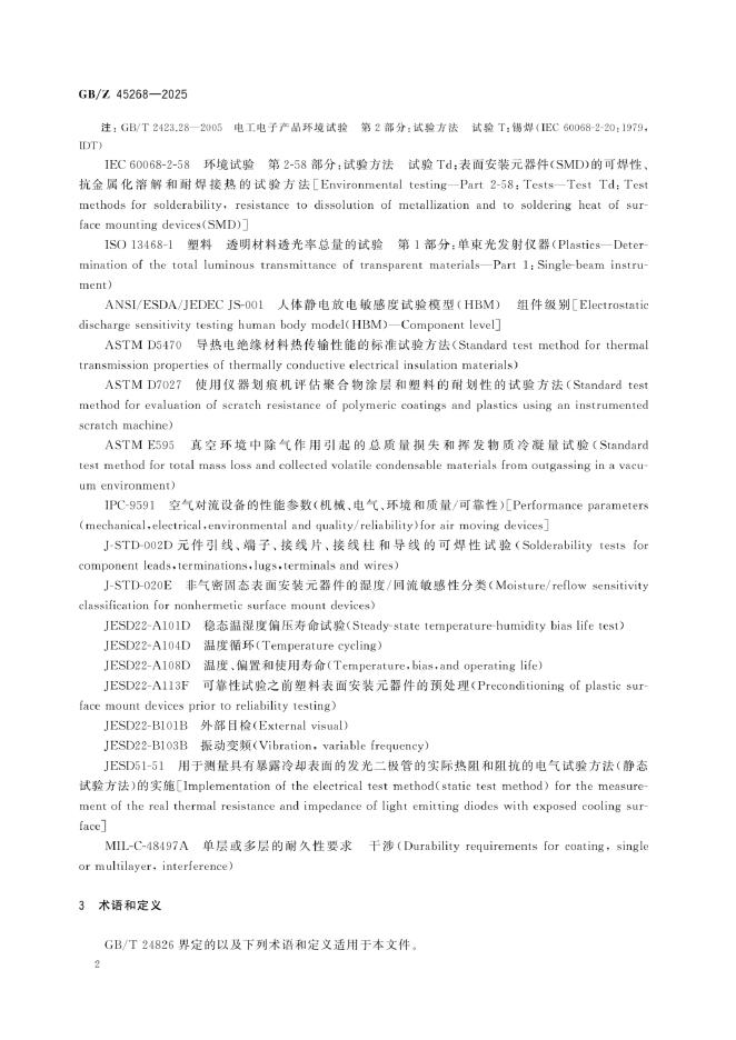 GB/Z 45268-2025 LED光源和LED灯具主要组件可靠性试验指南