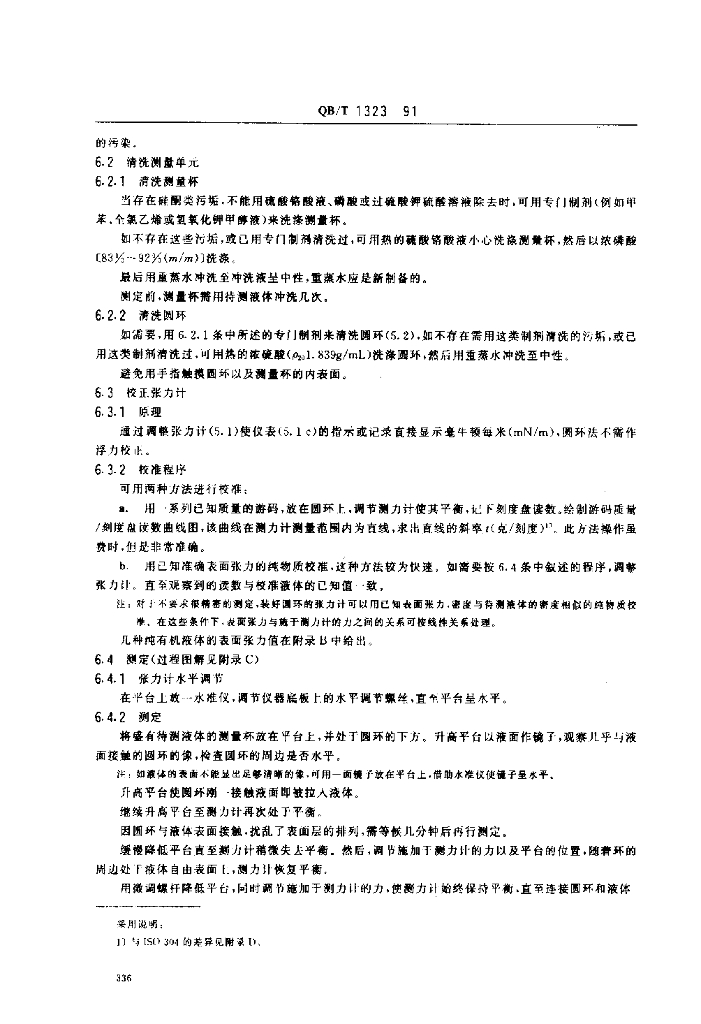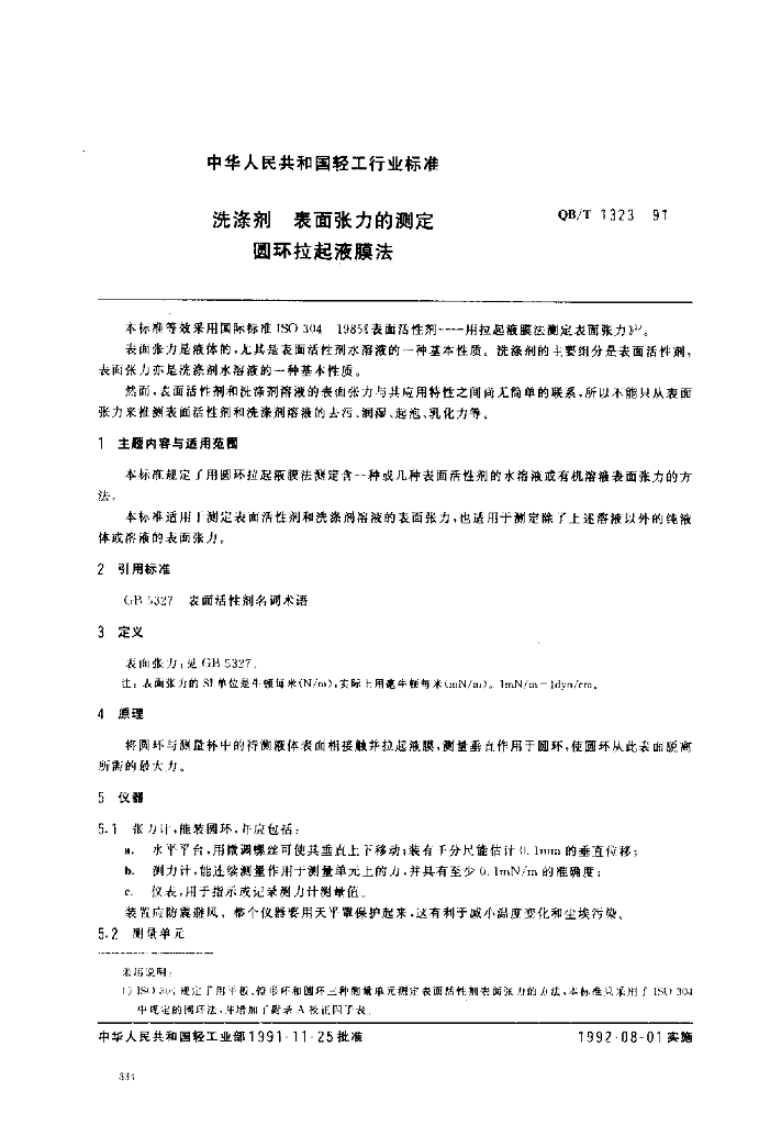 QB/T 1323-1991 洗涤剂表面张力的测定圆环拉起液膜法