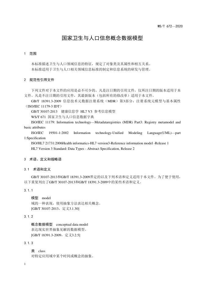 WS/T 672-2020 国家卫生与人口信息概念数据模型