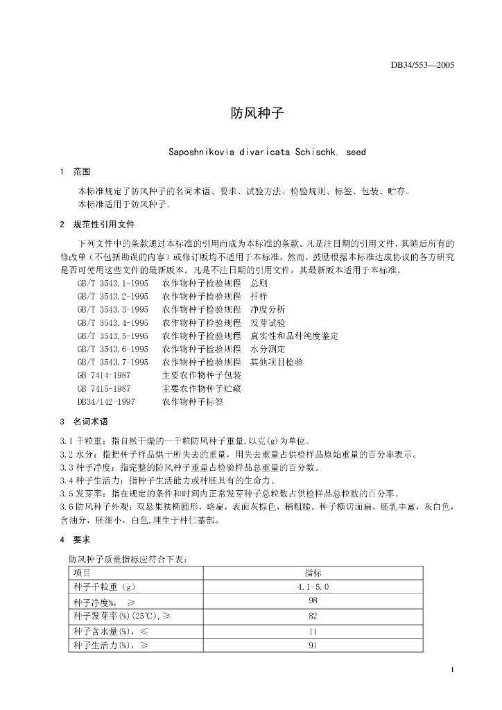 DB34/ 553-2005 防风种子