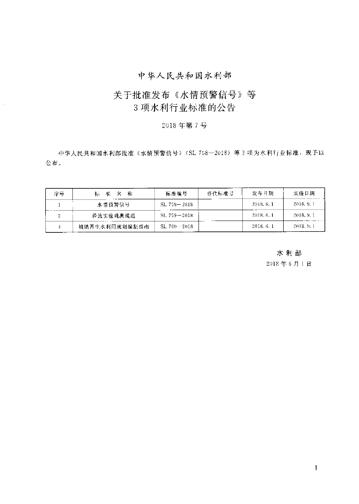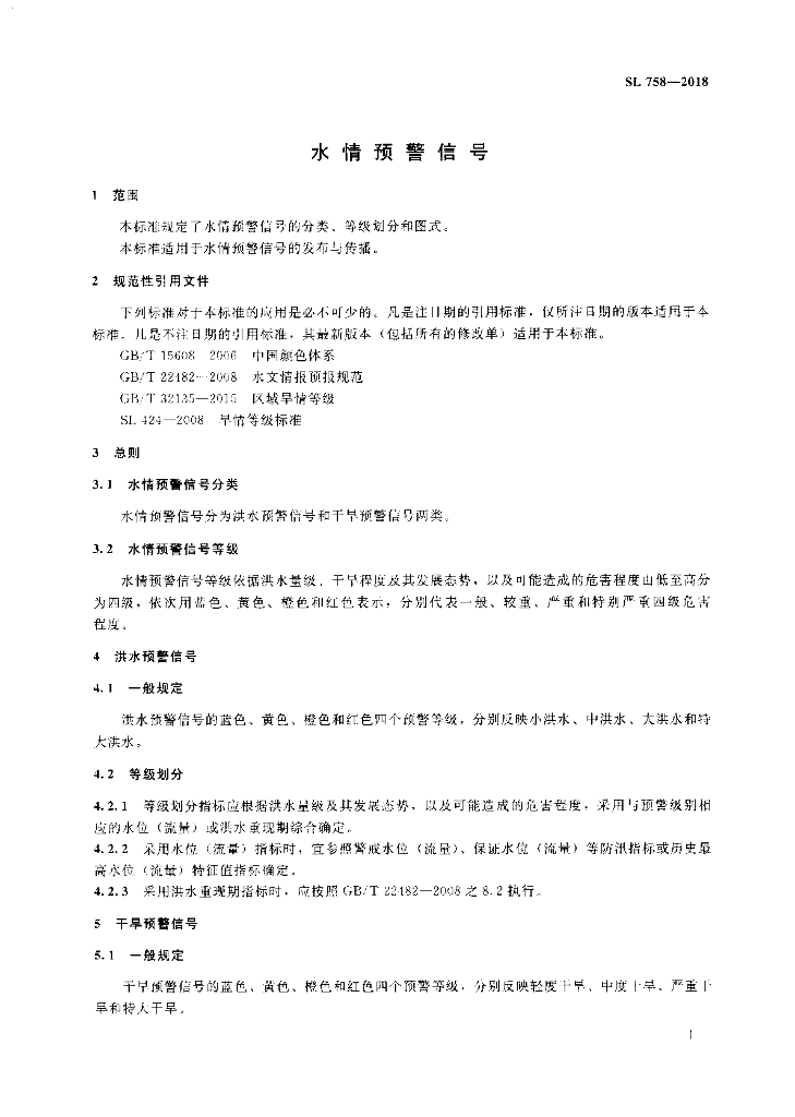 SL 758-2018 水情预警信号