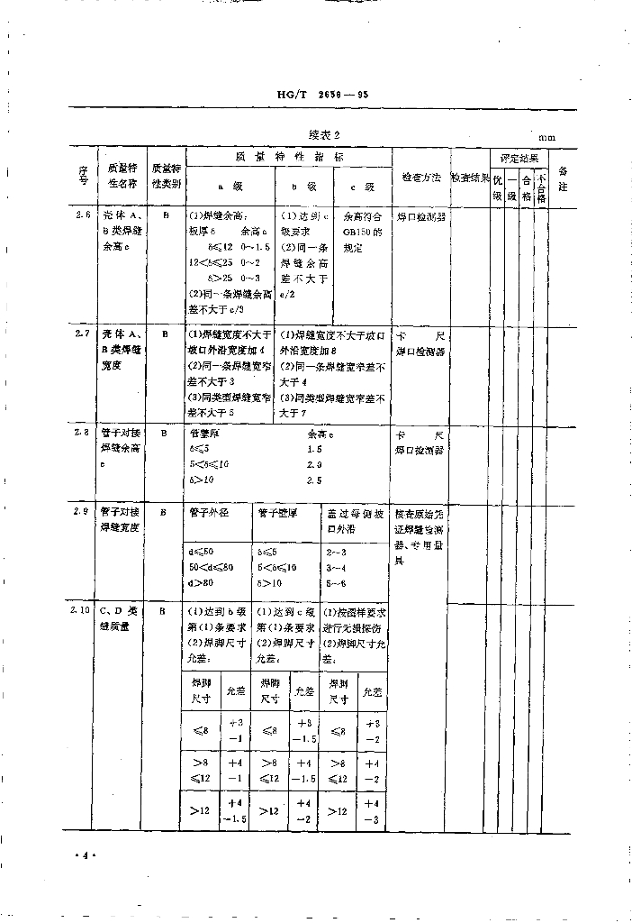 HG/T 2656-1995 钢制管壳式废热锅炉质量分等细则