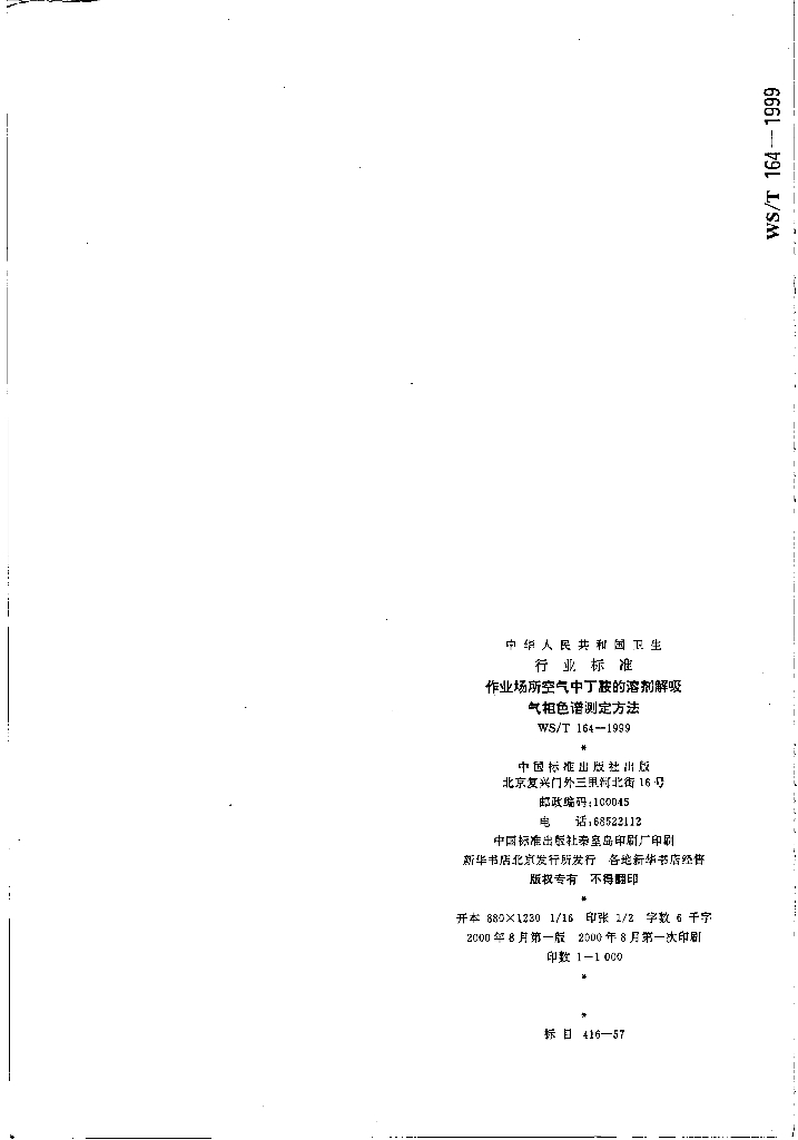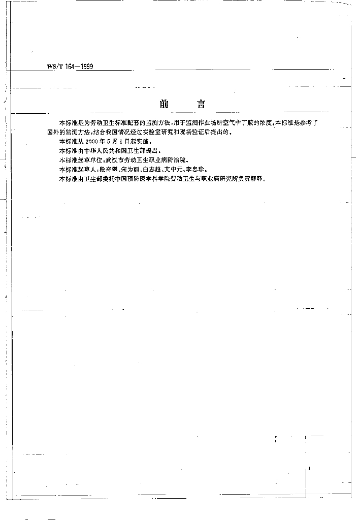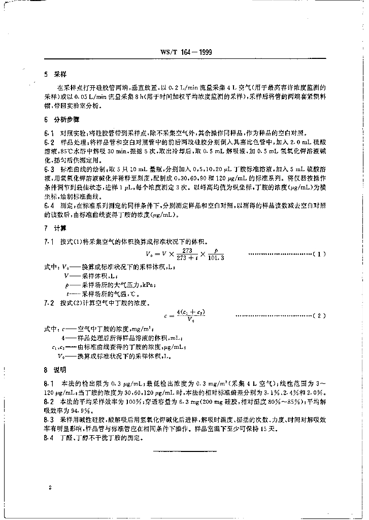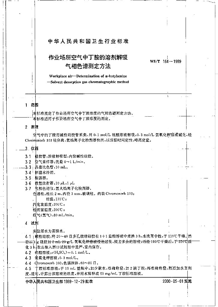WS/T 164-1999 作业场所空气中丁胺溶剂解吸气相色谱测定方法