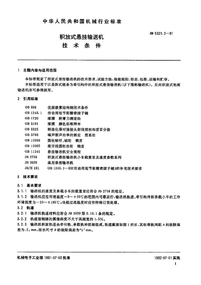 JB 9321-1991 积放式悬挂输送机技术条件
