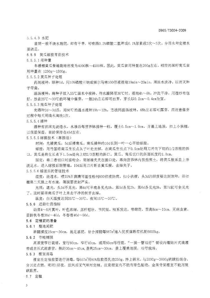 DB65/T 3024-2009 无公害农产品.日光温室黄瓜生产技术规程