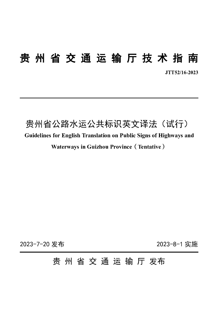 JT/T 52/16-2023 贵州省公路水运公共标识英文译法(试行)