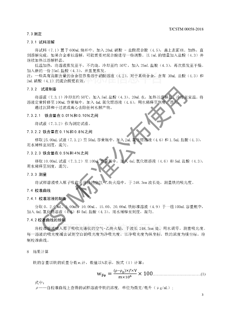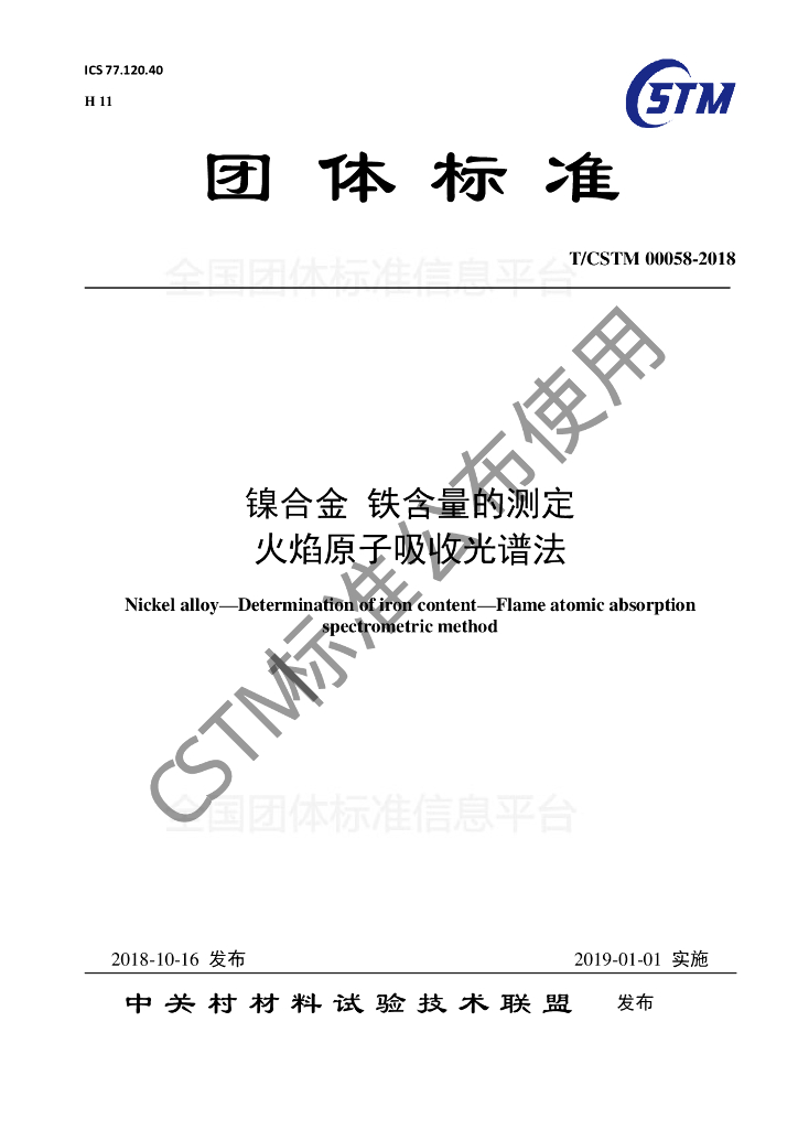 T/CSTM 00058-2018 镍合金 铁含量的测定 火焰原子吸收光谱法