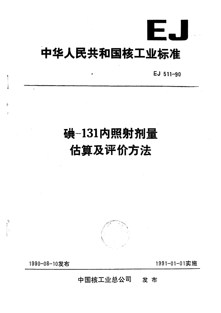 EJ 511-1990 碘-131内照射剂量估算及评价方法